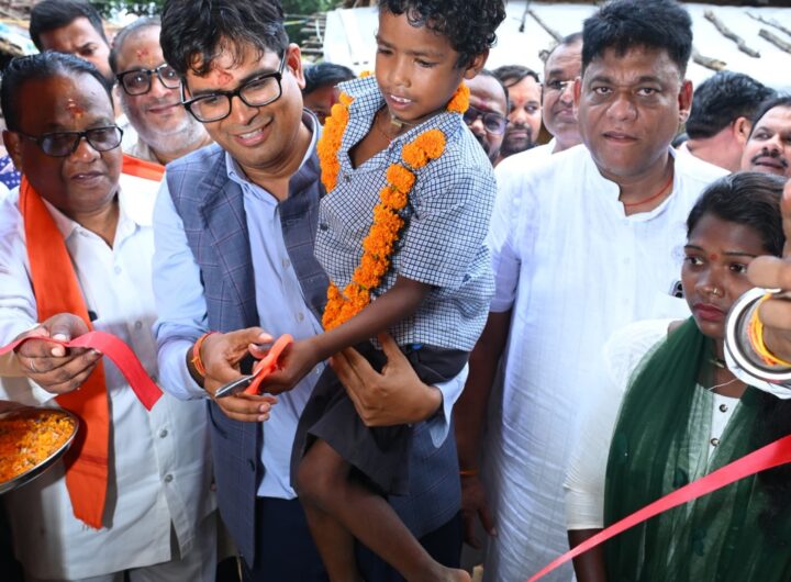 बिरहोर परिवार के गृह प्रवेश में पहुंचे वित्त मंत्री ओ.पी.चौधरी, परिवार के नन्हे बच्चे से कटवाया फीता