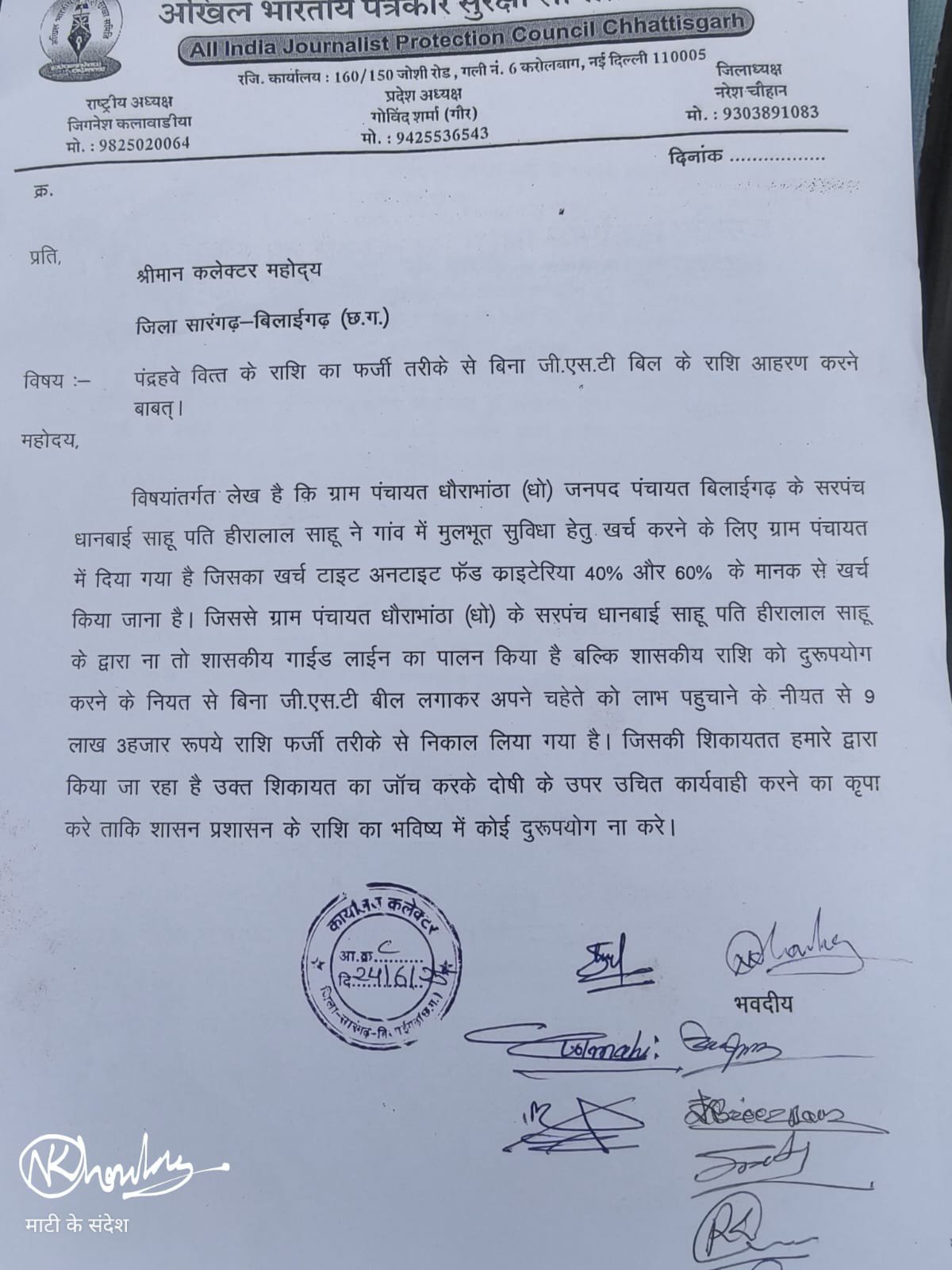 सूत्रों के अनुसार धौराभाठा पंचायत में 15वें वित्त आयोग की राशि में अनियमितता, बिना जीएसटी बिल के भुगतान जैसे मामलों की कवरेज करने पहुंचे पत्रकार मिथुन को सरपंच पति ने रिपोर्टिंग से रोकने का प्रयास किया। उनका कहना था कि यह खबर उजागर करने पर एफआईआर दर्ज करा दी जाएगी।