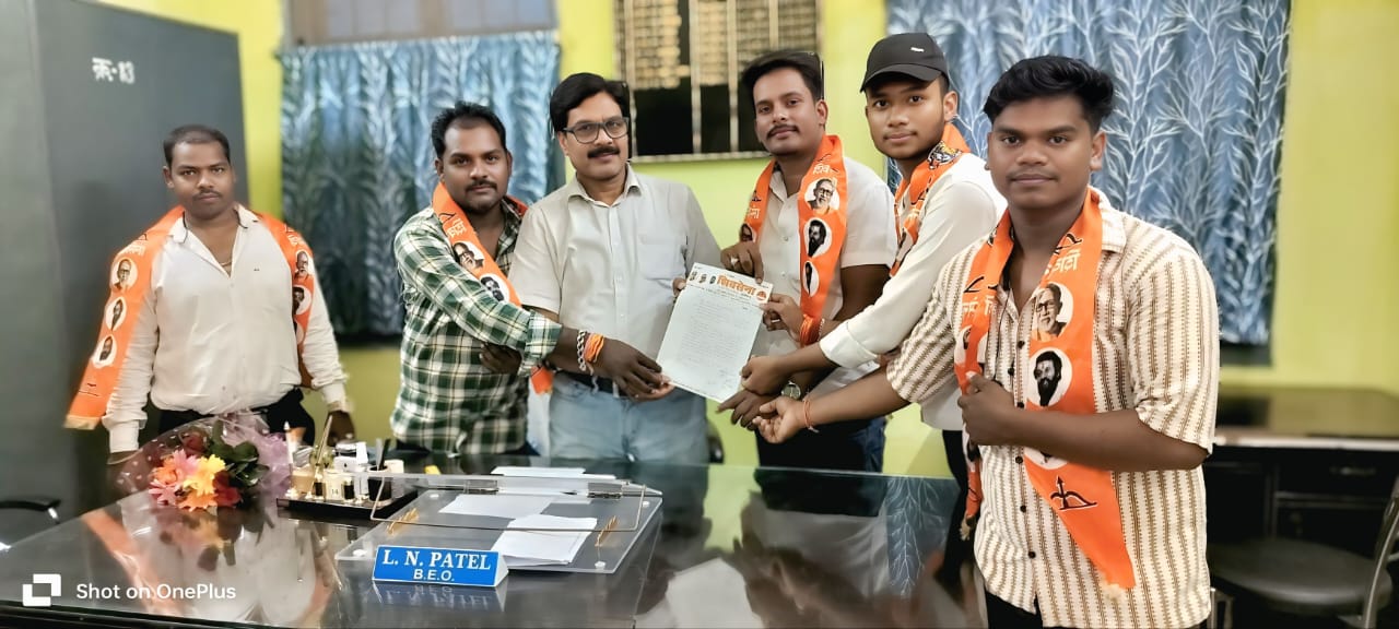 ज्ञापन देने गए शिवसेना के कार्यकर्त्ता शनि पिंटू यादव विधानसभा अध्यक्ष नितेश राठौर युवा नेता सुरेश सिदार युवानेता रिंकू भाट पुरुषोत्तम दास महंत शामिल हुए