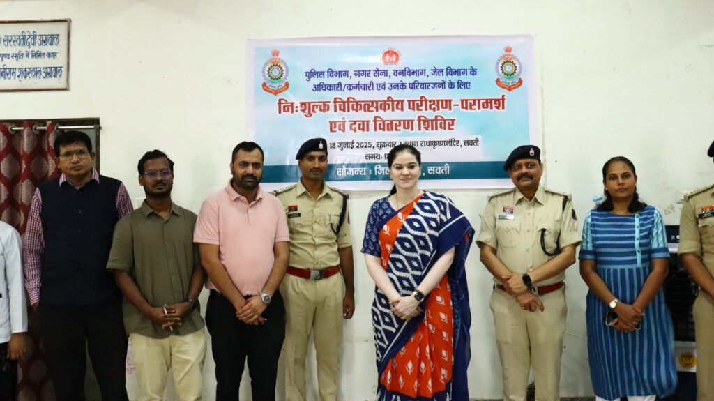 सक्ती :- 18 जुलाई 2025 – पुलिस अधीक्षक सक्ती अंकिता शर्मा (भा.पु.से.) के निर्देशन में आज पुलिस लाइन सक्ती में एक दिवसीय स्वास्थ्य परीक्षण शिविर का आयोजन किया गया। इस शिविर में जिले के पुलिस कर्मियों, वनकर्मियों, नगरसेना, जेलकर्मियों एवं उनके परिजनों ने बढ़-चढ़कर हिस्सा लिया।