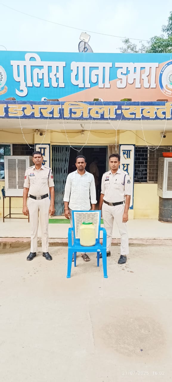 दिनांक 21.07.2025 को डभरा थाना क्षेत्र में तैनात मुखबिर से सूचना प्राप्त हुई कि ग्राम धूरकोट निवासी जयकिशन टंडन अपने घर के सामने अवैध रूप से कच्ची महुआ शराब बिक्री हेतु रखे हुए है। सूचना पर तत्काल कार्यवाही करते हुए पुलिस टीम ने बताए स्थान पर दबिश दी।