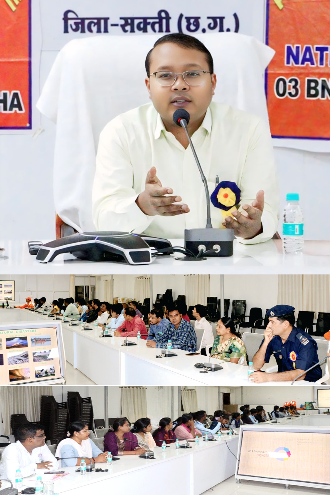 शक्ती :- 04 अगस्त 2025 // जिला मुख्यालय सक्ती में आज कलेक्टर अमृत विकास तोपनो की उपस्थिति में फेमेक्स कार्यक्रम अंतर्गत आपदा प्रबंधन विषय पर प्रशिक्षण का आयोजन किया गया। जिसका नेतृत्व राष्ट्रीय आपदा प्रतिक्रिया बल (एनडीआरएफ) की टीम ने किया। कार्यक्रम के तहत एनडीआरएफ की टीम द्वारा परिचयात्मक अभ्यास, सामुदायिक जागरूकता कार्यक्रम और स्कूल सुरक्षा से संबंधित विभिन्न गतिविधियो का अभ्यास कराया। इस अवसर पर कलेक्टर तोपनो ने कहा कि एनडीआरएफ एक अत्यंत प्रशिक्षित और समर्पित टीम है, जो हर प्रकार की आपदा में त्वरित और प्रभावी राहत कार्य करती है। यह टीम “फर्स्ट रिस्पॉन्डर” के रूप में समन्वय बनाकर आपदाओं से निपटने में त्वरित कार्य करती है। उन्होंने बताया कि फेमेक्स कार्यक्रम का उद्देश्य आमजन, स्कूली छात्र छात्राओं, युवाओं ग्राम स्तरीय स्वयं सेवकों सहित सभी वर्ग के लोगों को आपदा की स्थिति में त्वरित प्रतिक्रिया देने और आपदा की स्थिति से निपटने के लिए जागरूक एवं प्रशिक्षित करना है। कार्यक्रम के दौरान एनडीआरएफ की टीम ने प्रतिभागियों को प्राकृतिक आपदाओं (जैसे भूकंप, बाढ़ आदि), आपदाओं (जैसे आगजनी, दुर्घटनाएं आदि), आपदा प्रबंधन के सिद्धांतों, राहत एवं बचाव कार्यों के बारे में विस्तारपूर्वक जानकारी दी। प्रशिक्षण में कलेक्टर कार्यालय के अधिकारियों, कर्मचारियों सहित कॉलेज और स्कूल के छात्र-छात्राए, शिक्षकगण आदि शामिल हुए।