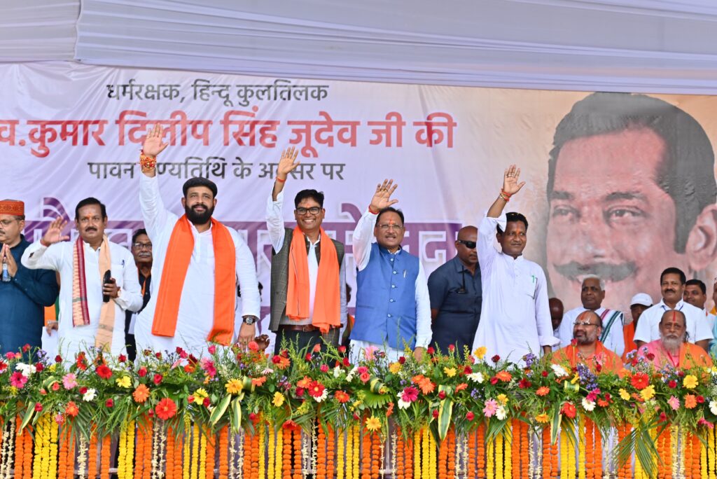 रायगढ़ :- 14 अगस्त 2025/ मुख्यमंत्री विष्णुदेव साय ने आज रायगढ़ के धरमजयगढ़ में आयोजित संस्कृति गौरव महासम्मेलन एवं अभिनंदन समारोह को संबोधित करते हुए कहा कि स्व. कुमार दिलीप सिंह जूदेव न केवल राजनीति के मार्गदर्शक थे, बल्कि सनातन धर्म और भारतीय संस्कृति के सच्चे ध्वजवाहक भी थे। उन्होंने कहा कि स्व.जूदेव जी ने ‘घर वापसी’ के माध्यम से दबाव या बाहरी प्रभाव में आकर धर्मांतरण करने वालों को उनके मूल धर्म में लौटने का मार्ग दिखाया। विशेषकर आदिवासी क्षेत्रों में उन्होंने धर्मांतरण के विरुद्ध सशक्त आंदोलन खड़ा किया और लोगों को उनकी सांस्कृतिक पहचान और परंपराओं से जोड़ा।
