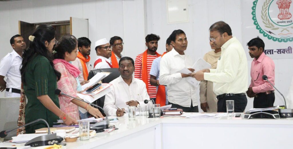 शक्ती :- 19 अगस्त 2025 // जिला कार्यालय में आयोजित हुए कलेक्टर जनदर्शन में आज कलेक्टर एवं जिला दंडाधिकारी अमृत विकास तोपनो द्वारा जिले के दूर दराज के इलाकों से आए विभिन्न लोगों की समस्याएं सुनी गई । जनदर्शन में आज अलग-अलग समस्याओं के निराकरण हेतु कुल 22 आवेदन प्राप्त हुए। जिस पर कलेक्टर ने प्राप्त आवेदनों को कलेक्ट्रेट परिसर सभाकक्ष में उपस्थित संबंधित अधिकारियों को तत्काल देकर यथाशीघ्र नियमानुसार त्वरित निराकरण करने के निर्देश दिए है। इस दौरान जिला पंचायत सीईओ वासु जैन, अपर कलेक्टर बीरेंद्र लकड़ा और सभी संबंधित विभागों के अधिकारी उपस्थित थे।