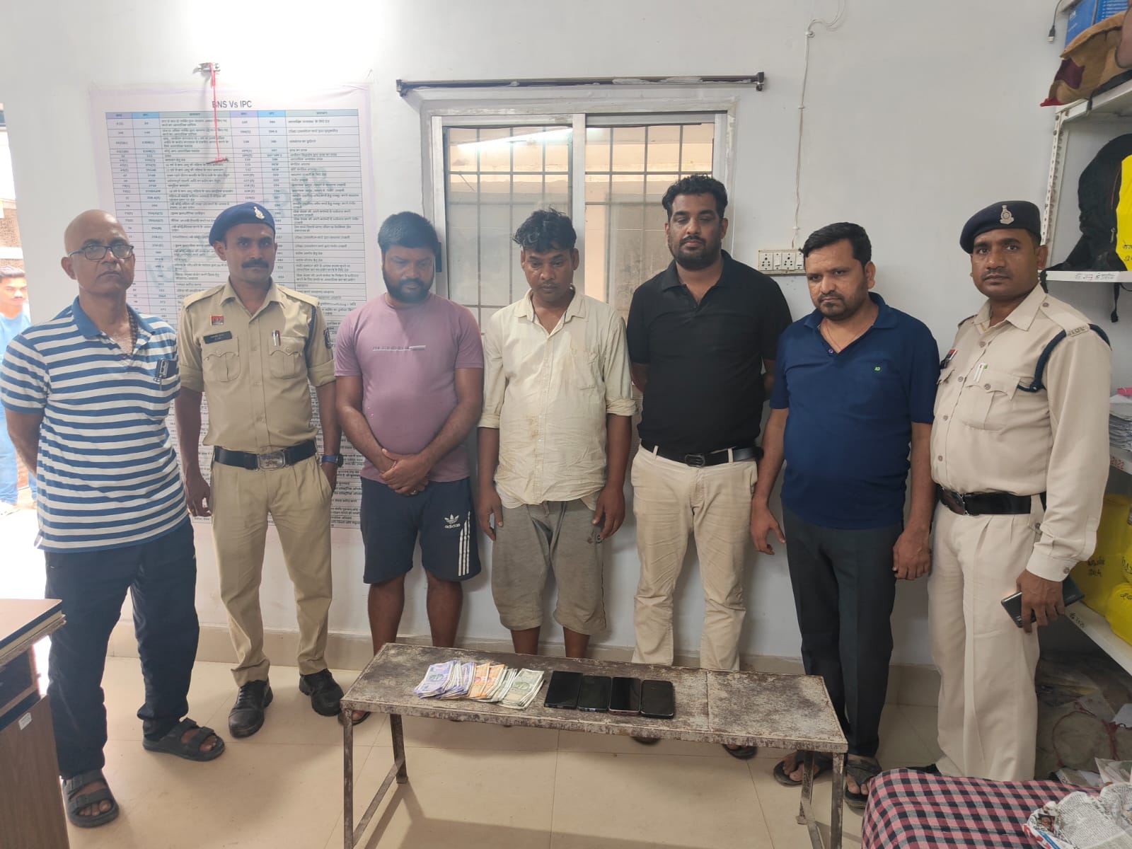 सक्ती :- पुलिस अधीक्षक अंकिता शर्मा के निर्देशन में अवैध जुआ/सट्टा एवं नशे के कारोबारियों के विरुद्ध चलाए जा रहे विशेष अभियान के तहत थाना सक्ती पुलिस ने बड़ी कार्यवाही करते हुए 4 जुआड़ियों को रंगेहाथ गिरफ्तार किया है।