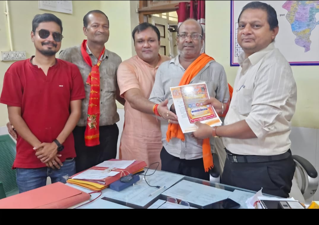 रायगढ़ :- खरसिया अनुविभागीय अधिकारी प्रवीण तिवारी जी को हनुमान सेवा समिति एवं सिया राम मंडल समिति के युवाओं के द्वारा अखंड राम सप्ताह का स्नेह आमंत्रण देने पहुंचे ,