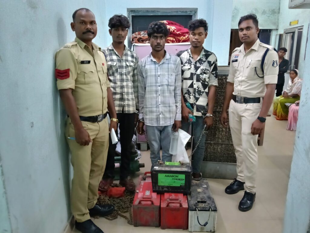रायगढ़ :- 23 सितंबर। घरघोड़ा पुलिस ने चोरी की वारदातों पर त्वरित कार्रवाई करते हुए पंप हाउस और मोबाइल दुकान से बैटरी चुराने वाले तीन आरोपियों को गिरफ्तार कर लिया है। आरोपियों के कब्जे से चोरी गई कुल तीन बैटरियां बरामद की गई हैं, जिनकी कीमत लगभग 28 हजार रुपये है।
