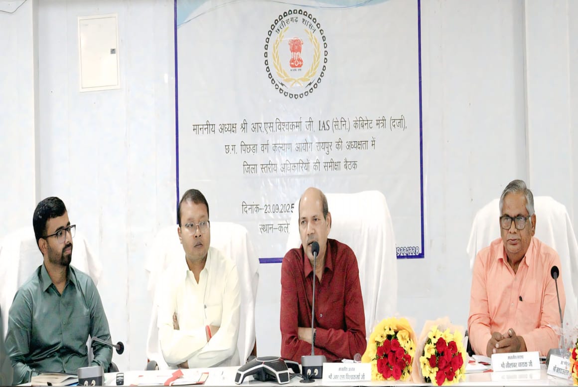 सक्ती :- 23 सितंबर 2025 // छत्तीसगढ़ राज्य पिछड़ा वर्ग कल्याण आयोग के अध्यक्ष केबिनेट मंत्री दर्जा आर.एस.विश्वकर्मा आई.ए.एस.(सेवानिवृत) ने सदस्यगण नीलांबर नायक, बलदाउ राम साहू, हरिशंकर यादव,यशवंत सिंह वर्मा,कृष्णा गुप्ता एवं सचिव अमित श्रीवास्तव की उपस्थिति में जिला स्तरीय विभागीय अधिकारियों की बैठक लेकर जिले में केन्द्र और राज्य शासन द्वारा संचालित विभिन्न योजनाओं के तहत शहरी तथा ग्रामीण क्षेत्र में अन्य पिछड़ा वर्ग के लाभान्वित हितग्राहियों की विस्तारपूर्वक जानकारी ली। छत्तीसगढ़ राज्य पिछड़ा वर्ग कल्याण आयोग के अध्यक्ष विश्वकर्मा ने सभी विभागीय अधिकारियों को शासन की विभिन्न जनकल्याणकारी योजनाओं से ओबीसी वर्ग को लाभ पहुंचाना सुनिश्चित करने के निर्देश दिए। बैठक में उन्होने अन्य पिछड़ा वर्ग के समाजिक एवं आर्थिक सर्वे की पंचायतवार विस्तारपूर्वक जानकारी लेते हुए आवश्यक निर्देश दिए। बैठक में उन्होने कहा कि हमारा प्रदेश कृषि प्रधान है जिसके लिए उन्होने कृषि विभाग सहित संबंधित अधिकारियों को जिले के किसानों को शासन की योजनाओं का ज्यादा से ज्यादा लाभ दिलाने कहा। उन्होने समाज कल्याण विभाग और शिक्षा विभाग को मिलकर जिले के विभिन्न गांवों में शिविर लगाकर दिव्यांगजनो का चिन्हाकंन कर उन्हे शासन की योजनाओं से लाभान्वित करने और विभिन्न जनकल्याणकारी योजनाओं का जमीनी स्तर पर प्रचार प्रसार कर आमजन को जागरूक करने कहा। इस अवसर पर अध्यक्ष श्री विश्वकर्मा ने आयोग की पृष्ठभूमि के संबंध में बताया कि आयोग के बनने के पश्चात ओबीसी वर्ग के कल्याण की दिशा में कार्य किया जा रहा है। उन्होंने बताया कि आयोग द्वारा शहरी और ग्रामीण क्षेत्र में ओबीसी जनसंख्या के अनुपात में आरक्षण व्यवस्था, आर्थिक सामाजिक सुधार कार्य, शासन की योजनाओं में अन्य पिछड़ा वर्ग की भागीदारी तथा अभी तक की भागीदारी में योजनाओं का लाभ उठा पाने में वंचित का पता लगाना भी शामिल है। उन्होंने कहा कि छत्तीसगढ़ पिछड़ा वर्ग कल्याण आयोग का उद्देश्य प्रदेश में पिछड़ा वर्ग समुदाय के कल्याण को ध्यान में रखते हुए उनके आर्थिक, सामाजिक, शैक्षणिक और राजनैतिक भागीदारी फोकस करना है।