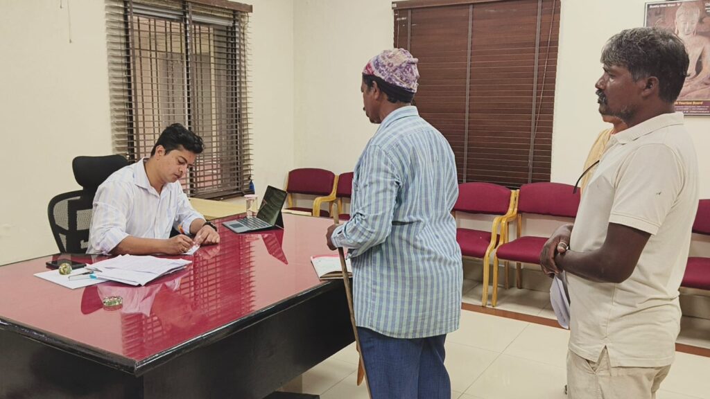 रायगढ़ :- 13 अक्टूबर 2025/ जिला कलेक्टोरेट में आज साप्ताहिक जनदर्शन का आयोजन किया गया। कलेक्टर मयंक चतुर्वेदी के निर्देशन में आज अपर कलेक्टर अपूर्व प्रियेश टोप्पो ने जिले के शहरी एवं ग्रामीण क्षेत्र से पहुंचे आमजनों की समस्याओं, मांगों और शिकायतों को गंभीरता पूर्वक सुना। जनदर्शन में पीएम आवास, राजस्व, राशन कार्ड, सामाजिक पेंशन समस्याओं से संबंधित आवेदन प्राप्त हुए। अपर कलेक्टर टोप्पो ने बारी-बारी से आमजनों की समस्याओं को सुनकर संबंधित अधिकारियों को तय समय-सीमा में गुणवत्तापूर्ण निराकरण करने के निर्देश दिए। उन्होंने कहा कि मुख्यमंत्री के मंशानुरूप आमजनों की समस्याओं के समाधान के लिए जिला कलेक्टोरेट में प्रत्येक सोमवार को जनदर्शन का आयोजन किया जाता है। सभी अधिकारी इसे गंभीरता से लें और आमजनों की समस्याओं का समयबद्ध निराकरण सुनिश्चित करें।