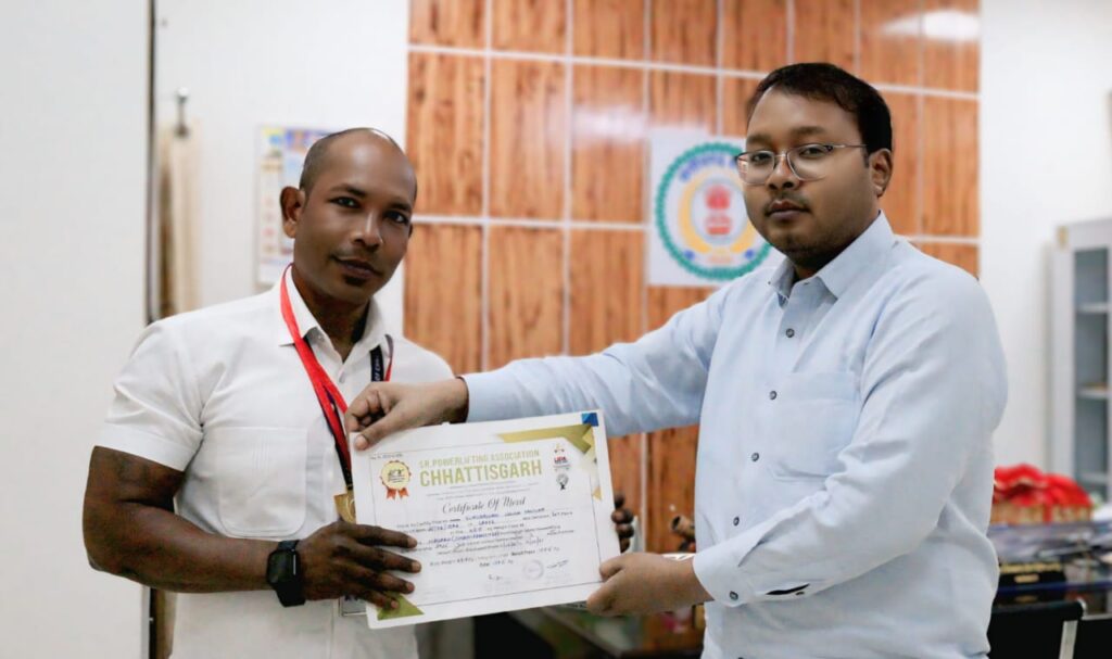 सक्ती :- 22 अक्टूबर 2025 कलेक्टर अमृत विकास तोपनो ने कलेक्टर कार्यालय के कर्मचारी और पावरलिफ्टर गुरुवचन सिंह कंवर को धमतरी के नगरी में आयोजित पावर लिफ्टिंग प्रतियोगिता में दो गोल्ड मेडल जीतने पर अपने कार्यालय कक्ष में सम्मानित किया। सिहावा नगरी, जिला धमतरी में सीनियर पावर लिफ्टिंग एसोसिएशन छत्तीसगढ़ द्वारा बेंचप्रेस, डेडलिफ्ट एवं पावरलिफ्टिंग की प्रतियोगिता आयोजित की गई। पावर लिफ्टिंग प्रतियोगिता में मास्टर 1 श्रेणी में पावरलिफ्टर गुरुवचन सिंह (प्रिंस) ने प्रथम स्थान प्राप्त किया। प्रतियोगिता के विभिन्न श्रेणी में श्री गुरुवचन ने कुल दो गोल्ड मेडल अपने खाते में दर्ज कराया है। उन्होंने 160 किलोग्राम डेडलिफ्ट में प्रथम स्थान तथा बेंच प्रेस पर 107.5 किलोग्राम बेंच प्रेस कर गोल्ड मेडल जीते। कलेक्टर ने पावरलिफ्टर गुरुवचन सिंह के उज्जवल भविष्य की कामना की है। इसी तरह उक्त प्रतियोगिता में श्री अखिलेश सिंह कंवर ने डेडलिफ्ट में सिल्वर मेडल अपने खाते में अर्जित किया है और अर्जुन निराला डेडलिफ्ट में गोल्ड मेडल और दिपांकर पटेल ने विभिन्न वर्ग में कुल तीन गोल्ड मेडल जीता।