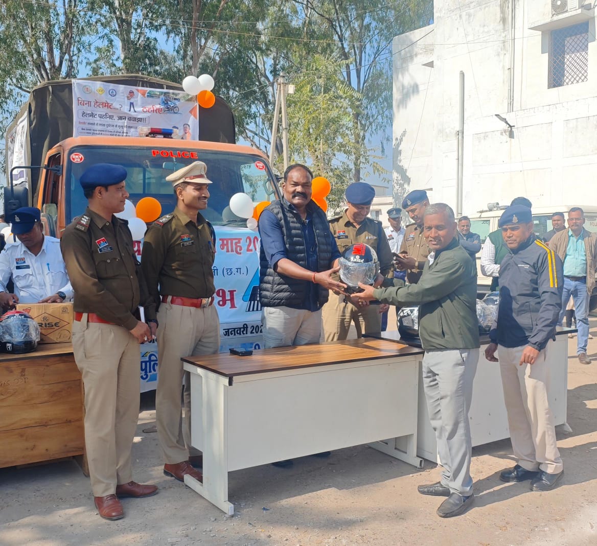 सक्ती :- 37वें राष्ट्रीय सड़क सुरक्षा माह के अंतर्गत आम नागरिकों को यातायात नियमों के प्रति जागरूक करने हेतु पुलिस विभाग द्वारा लगातार कार्यक्रम आयोजित किए जा रहे हैं। इसी कड़ी में पुलिस अधीक्षक प्रफुल ठाकुर (IPS) के निर्देशन एवं अतिरिक्त पुलिस अधीक्षक पंकज पटेल के मार्गदर्शन में आज 06 जनवरी को सक्ती नगर में हेलमेट जन-जागरूकता बाइक रैली एवं हेलमेट वितरण कार्यक्रम का आयोजन किया गया।