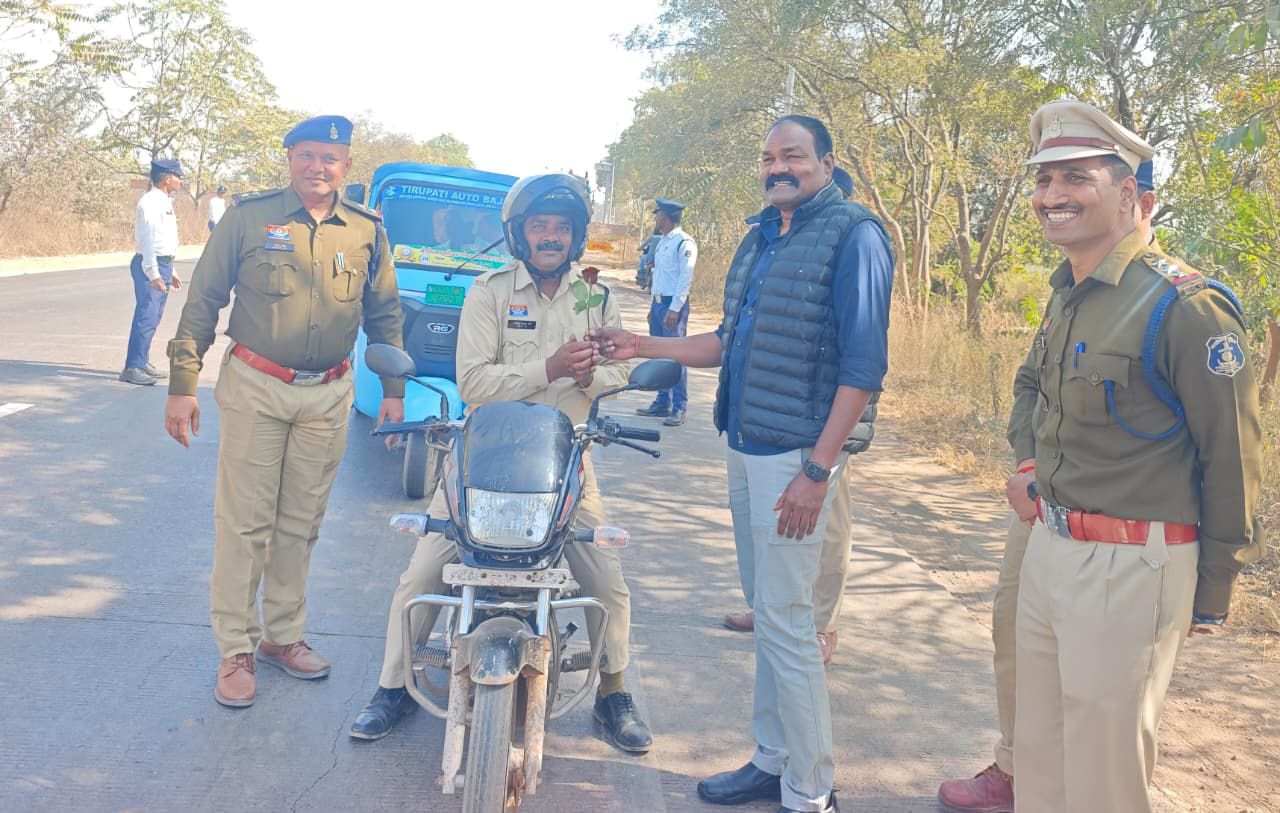 इस अवसर पर यातायात नियमों का पालन करते हुए हेलमेट एवं सीट बेल्ट लगाकर वाहन चलाने वाले चालकों को गुलाब फूल भेंट कर सम्मानित किया गया। इस पहल से आमजन में सकारात्मक संदेश गया तथा नियमों के पालन के प्रति उत्साह में वृद्धि हुई।