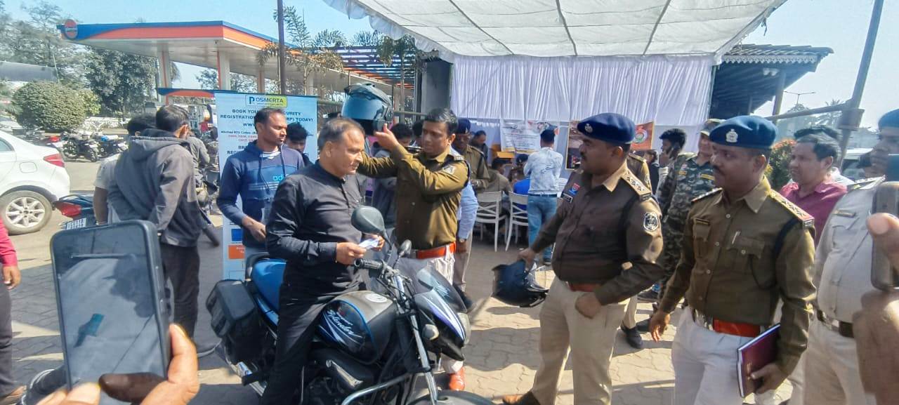 रायगढ़ :- 06 जनवरी । राष्ट्रीय सड़क सुरक्षा माह–2026 के अंतर्गत आज दिनांक 06 जनवरी 2026 को यातायात पुलिस रायगढ़ एवं परिवहन विभाग रायगढ़ के संयुक्त तत्वावधान में छातामुड़ा चौक पर हेलमेट जागरूकता को लेकर विशेष शिविर का आयोजन किया गया।