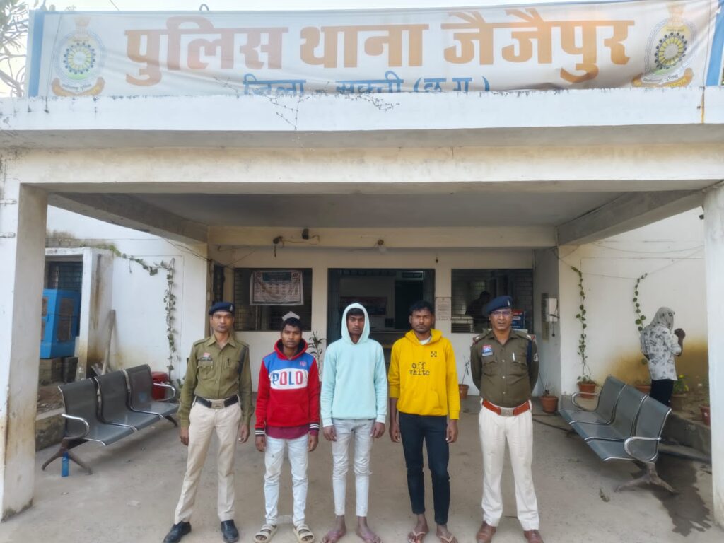 प्रार्थी की रिपोर्ट पर थाना जैजैपुर में अपराध क्रमांक 26/2026 धारा 191(1), 109(1), 296 बीएनएस के तहत मामला पंजीबद्ध किया गया। वरिष्ठ अधिकारियों के निर्देशन में की गई त्वरित कार्रवाई के तहत दिनांक 15.01.2026 को आरोपी दीपक केंवट (19 वर्ष), रूपकुमार सिदार (28 वर्ष) एवं वीरसिंह केंवट (20 वर्ष) को गिरफ्तार कर माननीय न्यायालय में प्रस्तुत किया गया, जहां से उन्हें न्यायिक हिरासत में जेल भेज दिया गया। वहीं विधि से संघर्षरत नाबालिगों को किशोर न्याय बोर्ड जांजगीर में पेश कर बाल संप्रेक्षण गृह कोरबा भेजा गया।इस संपूर्ण कार्रवाई में थाना प्रभारी उप निरीक्षक जी.एस. राजपूत सहित पुलिस स्टाफ का सराहनीय योगदान रहा।